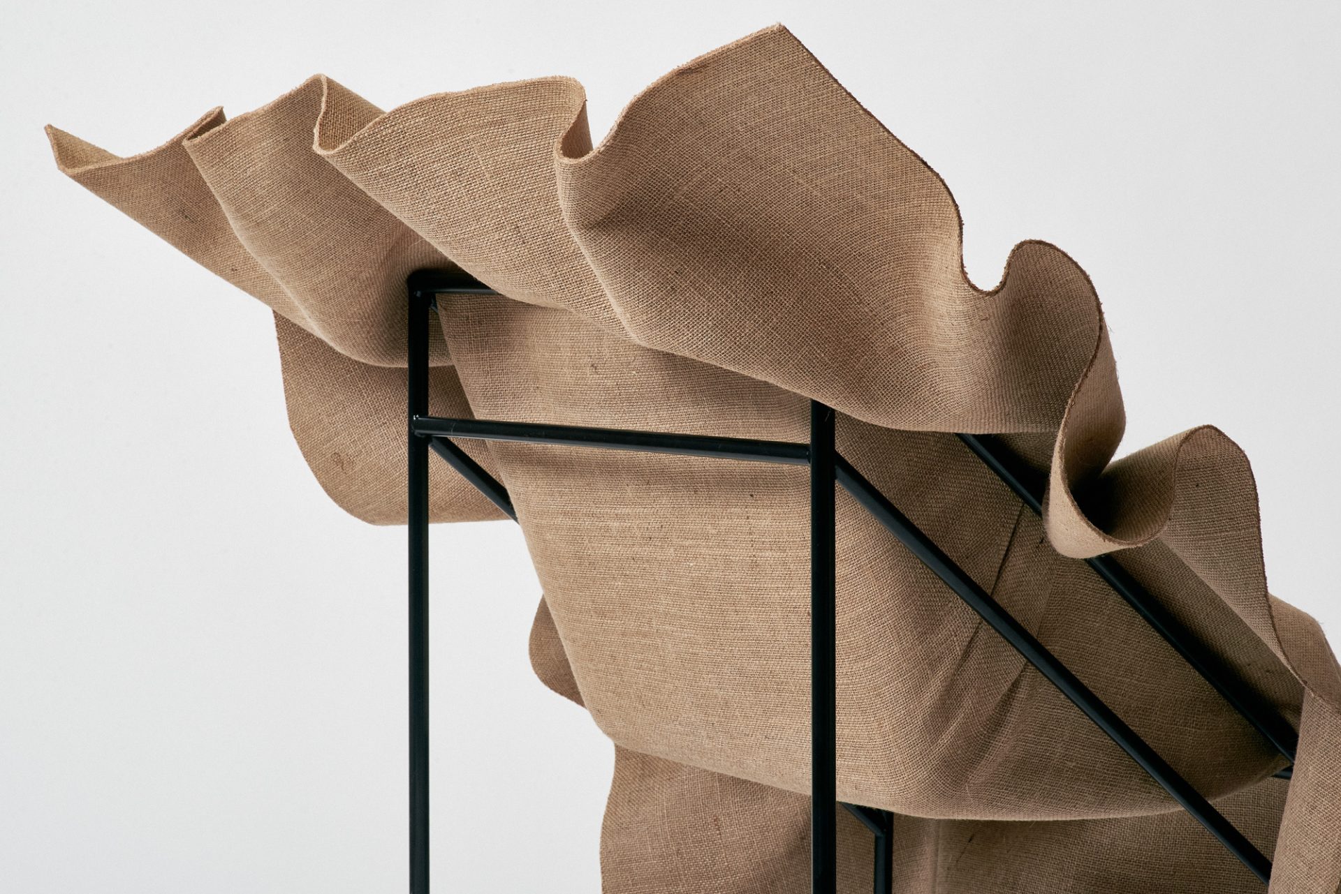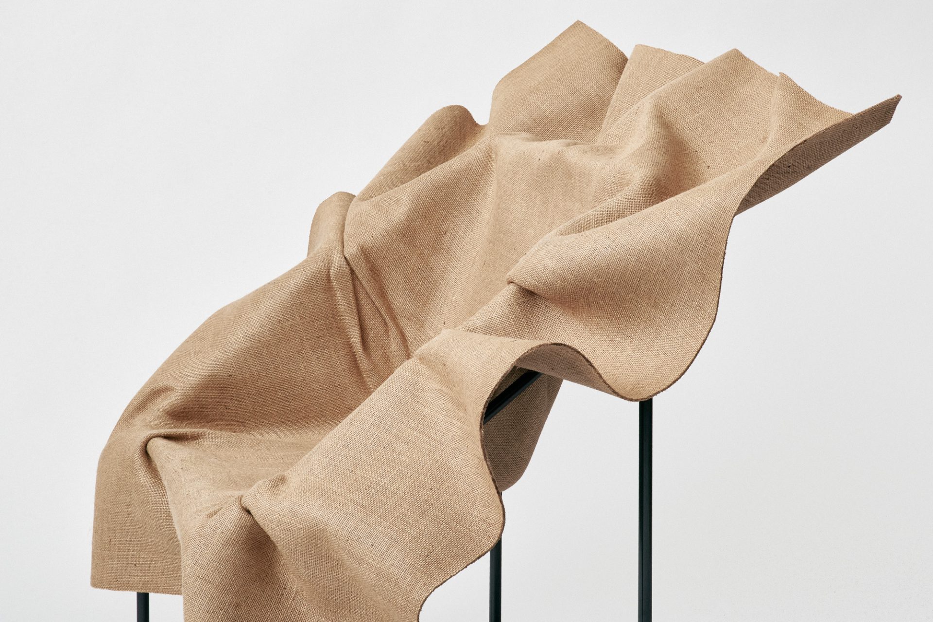 FROZEN TEXTILE IS AN EXPERIMENTAL ARMCHAIR MADE FROM BIODEGRADABLE COMPOSITE. THE PROJECTȚS FOUNDATION IS BASED ON THE CONCEPT OF POETRY IN THE CONCEPT OF DESIGN, WHICH IS VIEWED AS A DETERMINANT IN THE EMOTIONAL POWER OF OBJECTS. THE FABRIC IS FROZEN IN THE MOMENT OF CREATION, FOREVER HELD IN A POSITION SIMULTANEOUSLY RIGID AND FLUID. THE SEAT DIPS IN, AS IF INHABITED BY AN INVISIBLE PERSON, WHILE THE REST OF THE FABRIC EXTENDS IN IRREGULAR RIPPLES ABOVE AND BEYOND THE LEGS – AS IF BEING BLOWN BY WIND.